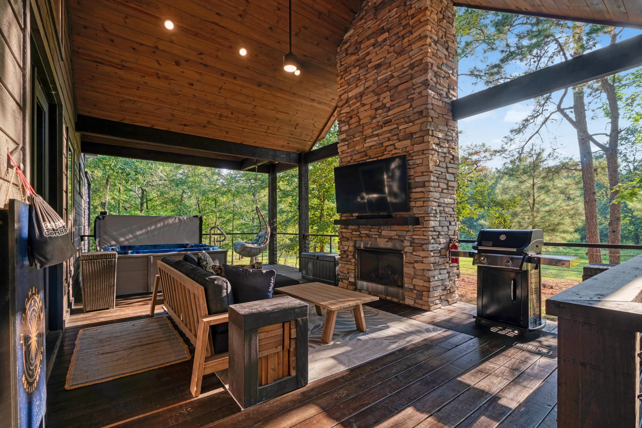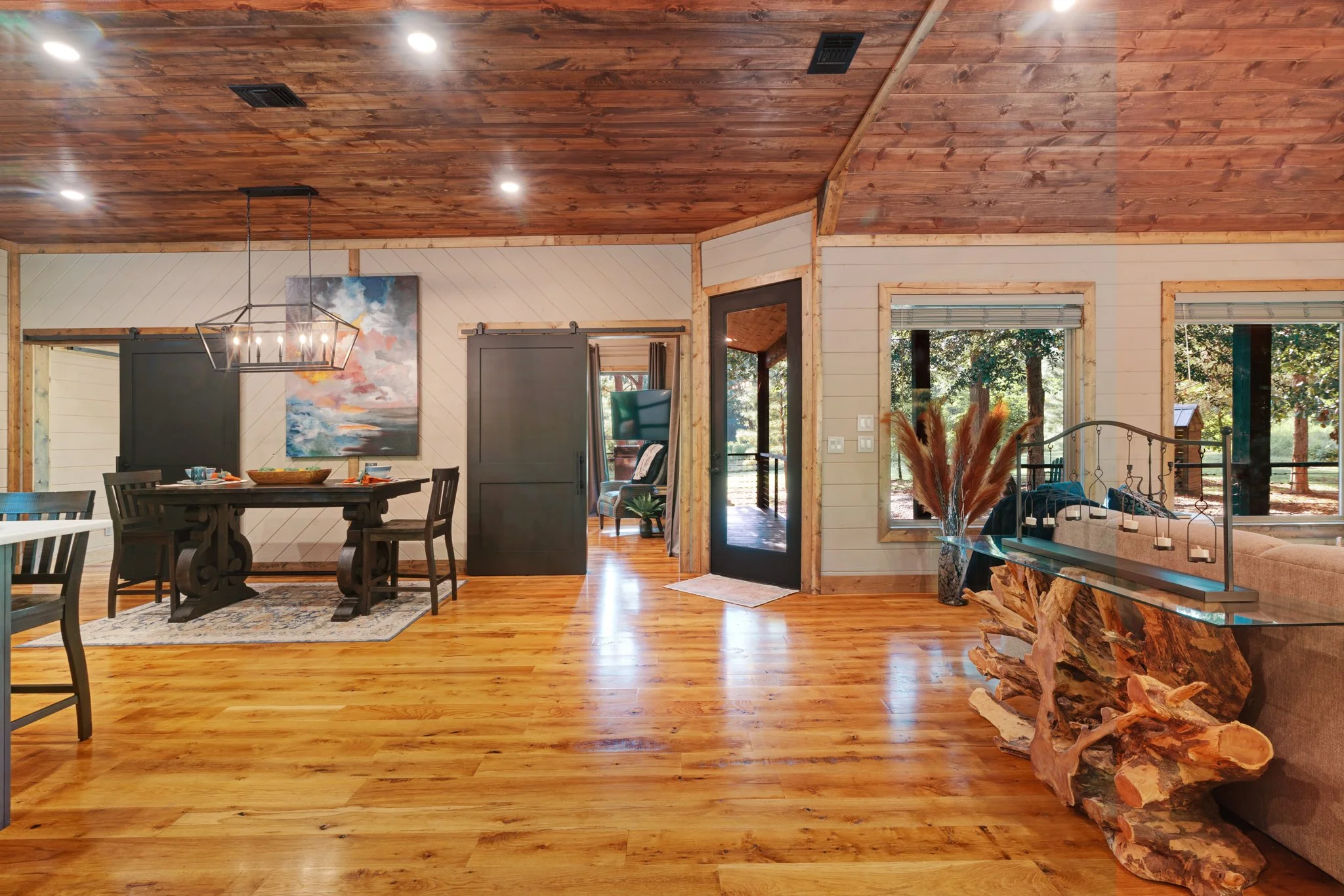 Kassy’s Place is in the Lost Creek Development in the heart of Hochatown. It is just minutes away from Broken Bow Lake, Beavers Bend State Park, the Ouachita National Forest, and all Hochatown has to offer—without the worries of getting lost. This delightful twenty-six hundred square foot cabin built by Kevin and Krissa Perry, owners of Lost Creek, with its spacious gravel parking in the front and plenty of room for boat parking offers everything one could want in a vacation property.